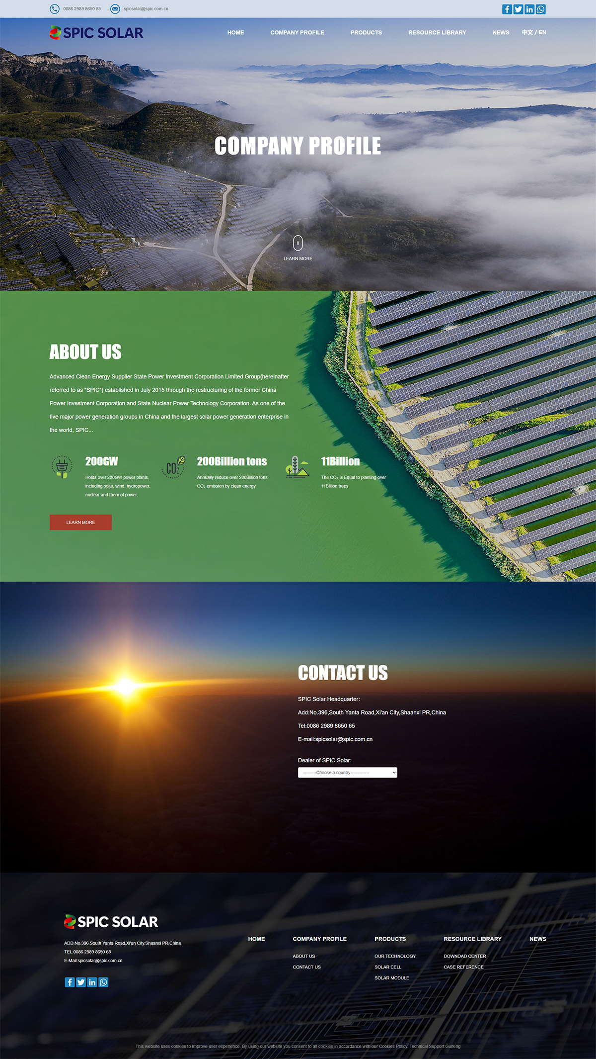 Advanced Clean Energy Supplier State Power Investment Corporation Limited Group(hereinafter referred to as "SPIC") established in July 2015 through the restructuring of the former China Power Investment Corporation and State Nuclear Power Technology Corporation.