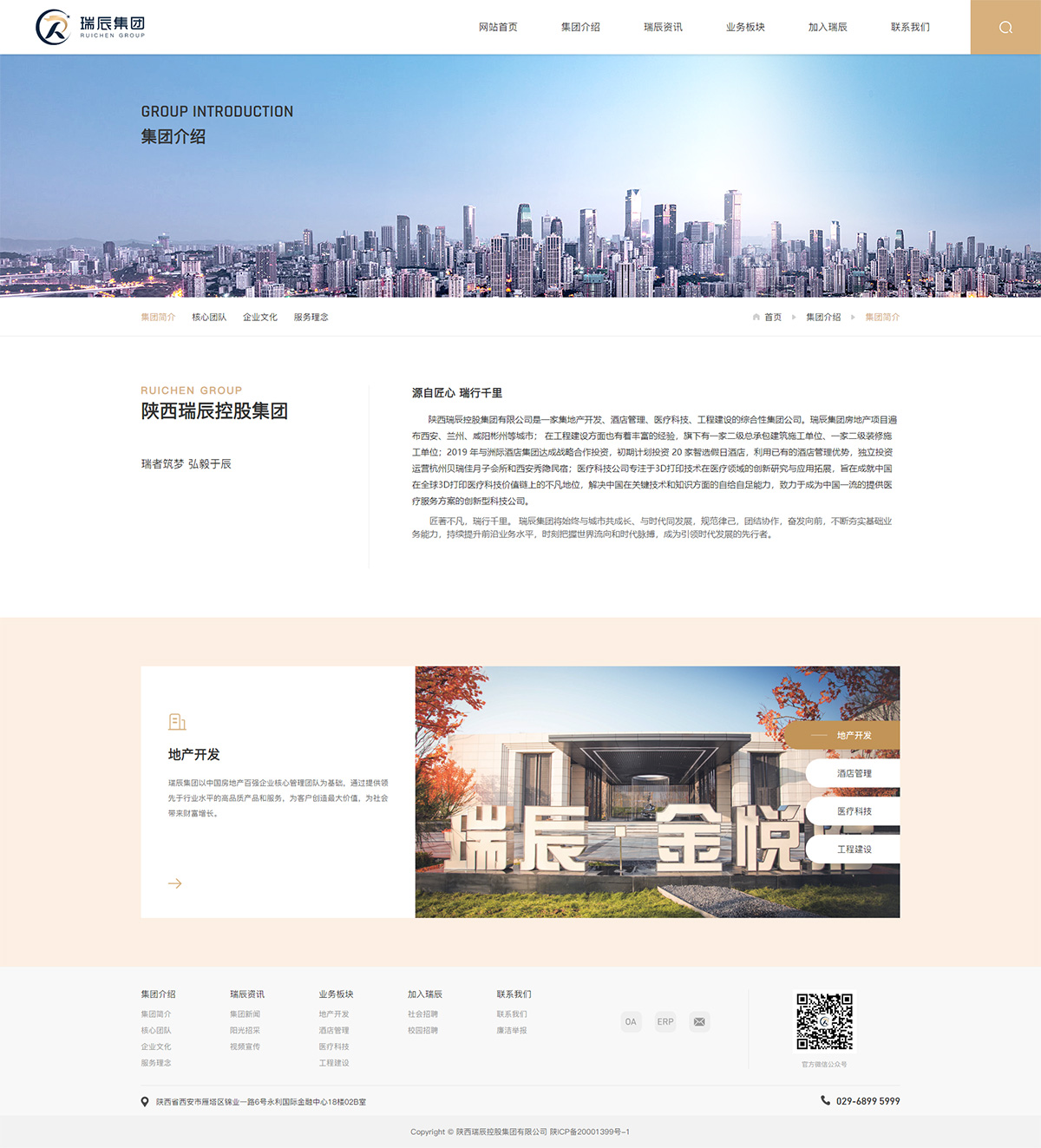 陜西瑞辰控股集團有限公司是一家集地產(chǎn)開(kāi)發(fā)、酒店管理、醫療科技、工程建設的綜合性集團公司。瑞辰集團房地產(chǎn)項目遍布西安、蘭州、咸陽(yáng)彬州等城市; 在工程建設方面也有著(zhù)豐富的經(jīng)驗,旗下有一家二級總承包建筑施工單位、一家二級裝修施工單位.匠著(zhù)不凡,瑞行千里。 瑞辰集團將始終與城市共成長(cháng)、與時(shí)代同發(fā)展,規范律己,團結協(xié)作,奮發(fā)向前,不斷夯實(shí)基礎業(yè)務(wù)能力,持續提升前沿業(yè)務(wù)水平,時(shí)刻把握世界流向和時(shí)代脈搏,成為引領(lǐng)時(shí)代發(fā)展的先行者。