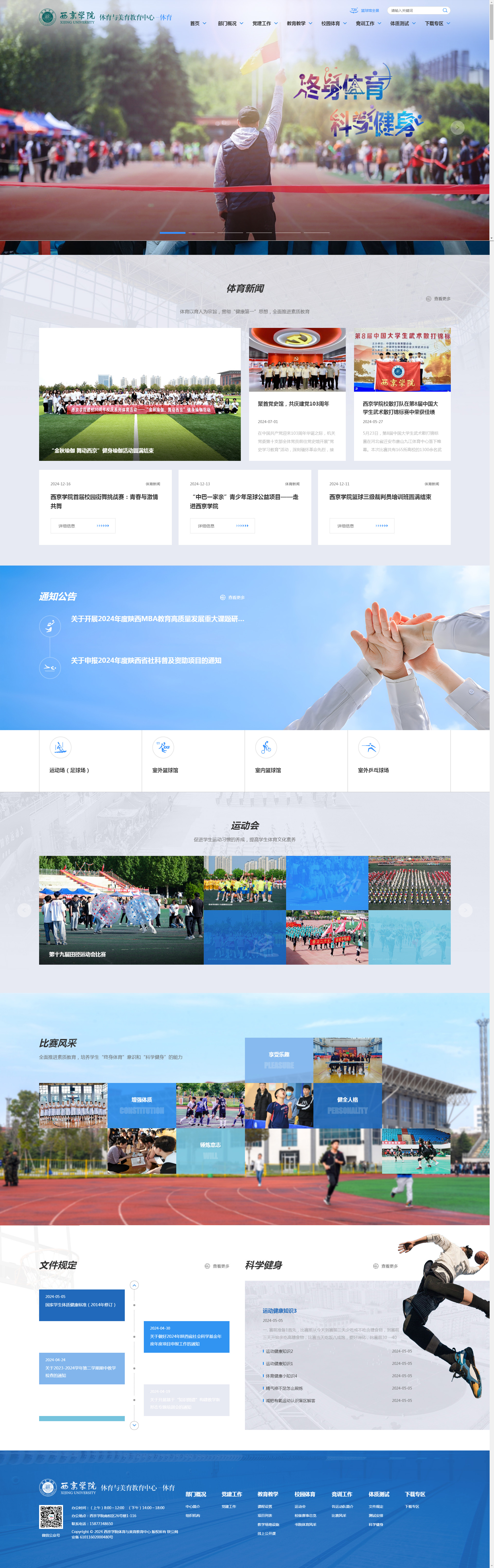 西京學(xué)院體育與美育教育中心于2024年8月由原體育教育中心和公共藝術(shù)教育中心整合成立,中心下設體育部、美育部、綜合辦公室、體質(zhì)健康測試中心及7個(gè)教研室。中心主要承擔學(xué)校公共體育、公共藝術(shù)的課程教育,校級運動(dòng)隊、藝術(shù)團、學(xué)生社團的訓練和指導,體育藝術(shù)場(chǎng)館管理服務(wù),各級各類(lèi)校內外體育競賽、文藝演出及對外交流等工作。