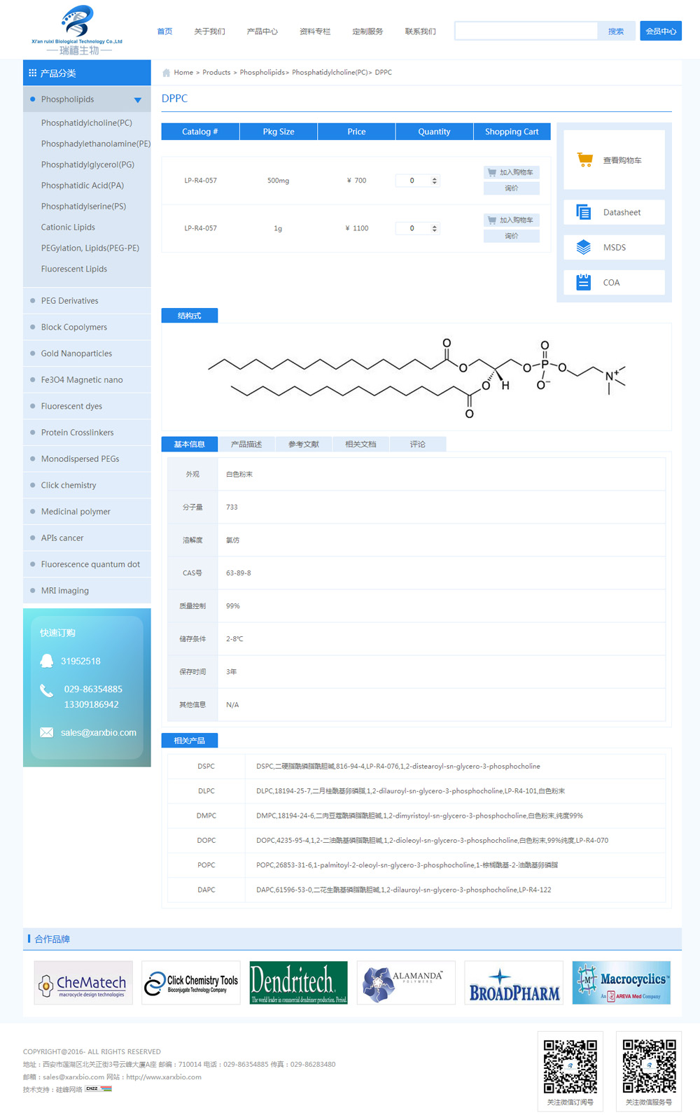 西安瑞禧生物科技有限公司是國內一家知名的生物科技公司,我公司專(zhuān)注于藥物傳遞和藥物靶向方向的科研研究,公司所有的產(chǎn)品及材料都是關(guān)于藥物傳遞和藥物靶向方向,公司成立之初以代理國外進(jìn)口品牌的為主,產(chǎn)品主要涉及磷脂、PEG衍生物等產(chǎn)品,隨著(zhù)公司的發(fā)展和擴大,公司更注重自主品牌的建立和更廣泛的產(chǎn)品拓展,我公司為建立和發(fā)展自主品牌和產(chǎn)品,已成立自己的合成實(shí)驗室,為廣大客戶(hù)提供西安瑞禧生物自主品牌的產(chǎn)品,與此同時(shí)在未來(lái)3-5年或者更久我公司將持續和各大高校的重點(diǎn)實(shí)驗室的教授合作,生產(chǎn)高品質(zhì),高科技附加值的產(chǎn)品或定制復雜特殊的試劑產(chǎn)品。
