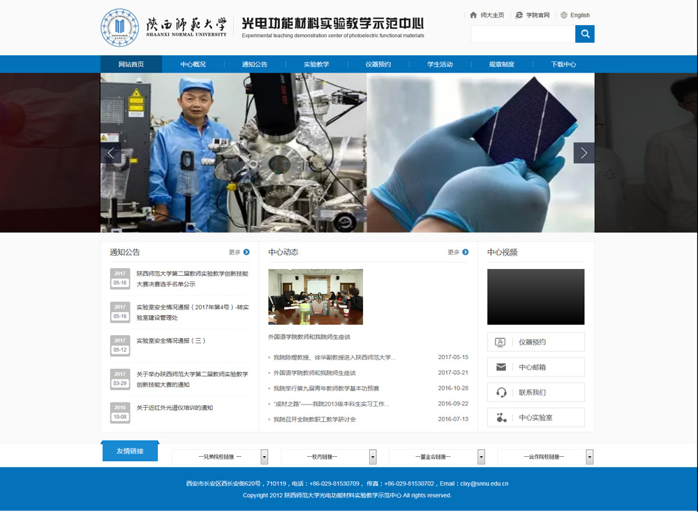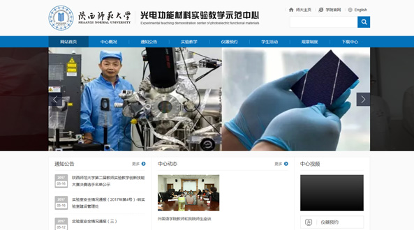 2001年,依據學(xué)科發(fā)展,在原化學(xué)學(xué)科基礎上,提出了發(fā)展材料科學(xué)學(xué)科,并于同年成立化學(xué)與材料科學(xué)學(xué)院。根據當時(shí)化學(xué)、應用化學(xué)和材料化學(xué)專(zhuān)業(yè)實(shí)驗教學(xué)需求,將“化學(xué)基礎教學(xué)實(shí)驗中心”更名為“化學(xué)實(shí)驗教學(xué)中心”。經(jīng)過(guò)多年建設,2005年7月成為陜西省化學(xué)實(shí)驗教學(xué)示范中心,2007年成為國家級化學(xué)實(shí)驗教學(xué)示范中心。
