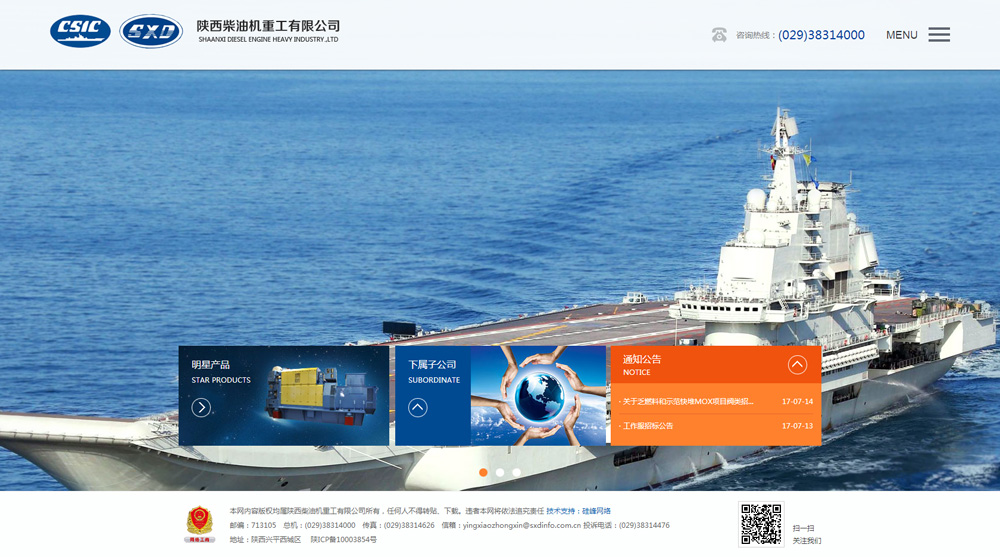 陜西柴油機重工有限公司(SXD)始建于1953年3月,是我國“一五”期間投資興建的156項重點(diǎn)工程之一,屬?lài)?52家重點(diǎn)保軍企業(yè)之一,是國內規模最大的中、高速大功率船用柴油機專(zhuān)業(yè)制造和柴油發(fā)電機組成套企業(yè),是海軍艦船動(dòng)力主要供應商。隸屬于世界500強之一的中國船舶重工集團公司(CSIC)。